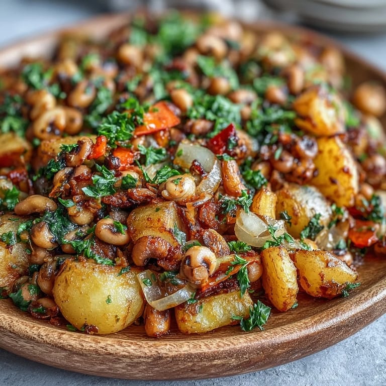 Save There's something about the smell of roasted potatoes hitting your kitchen that makes everything feel right, and that's exactly what happens when you throw this black-eyed pea hash together on a lazy weekend morning. My neighbor stopped by one Saturday while I was pulling this out of the oven, and the aroma practically dragged her inside—she ended up staying for breakfast and has been making it ever since. It's the kind of dish that tastes way more impressive than the effort it takes, with crispy golden potatoes, tender peppers, and those earthy black-eyed peas all caramelized at the edges. The beauty is you can eat it solo with coffee, or pile eggs on top and call it a proper meal.