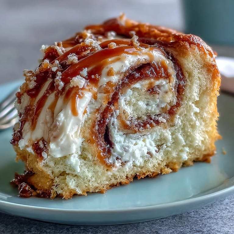 Save My neighbor brought over a slice wrapped in foil one Saturday morning, still warm from her oven. The smell hit me before I even unwrapped it: butter, brown sugar, and something tangy I couldn't place. One bite and I was texting her for the recipe before I'd even finished chewing. That cream cheese center was like biting into a cloud of cheesecake tucked inside perfectly moist bread, and the caramel swirl added just enough drama to make it feel special without any fuss.