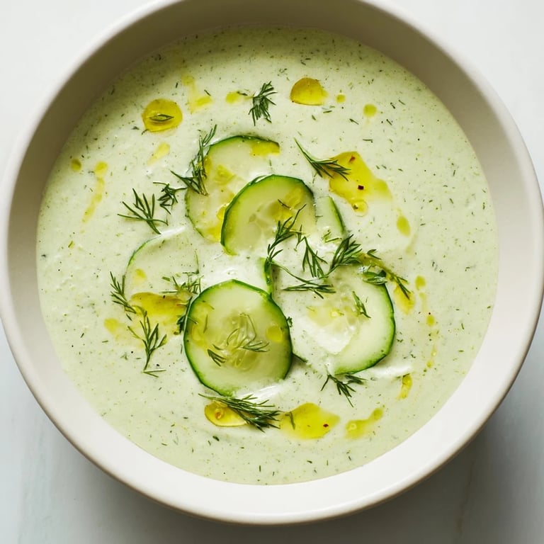 Save One July afternoon, I opened my fridge to find three massive cucumbers taking up half the vegetable drawer, and realized I'd been avoiding them for days. I remembered a moment from traveling through Greece years ago—a restaurant terrace overlooking the Aegean, where they served a chilled soup so cold and refreshing it felt like the ocean itself had been whipped into yogurt and poured into a bowl. That's when it clicked: I could make that here, right now, with what I had. Twenty minutes later, I was tasting something that transported me straight back to that breeze, that light, that exact feeling of summer in a spoon.
