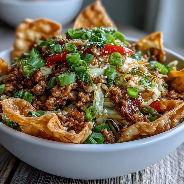 Save My sister called me one Tuesday evening asking for something quick but impressive—she had exactly thirty minutes before her kids needed dinner. I'd been curious about deconstructed bowls for a while, and ranch seasoning was sitting in my pantry practically begging to be used outside its usual applications. The idea hit me instantly: what if I took all the comfort of a crispy egg roll and just... didn't wrap it? Ground turkey, fresh vegetables, a hit of that creamy ranch flavor, and those addictive wonton strips on top. She made it that night and hasn't stopped asking me for the recipe.