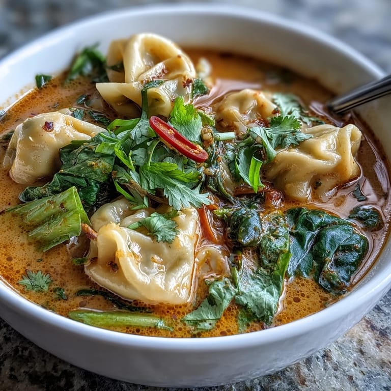Save Wednesday nights used to mean takeout containers piling up on my counter, but then I discovered that a pot of red curry wonton soup could happen in my own kitchen faster than delivery arrives. The first time I made this, I was skeptical that frozen wontons could taste anything like restaurant quality, but the moment that fragrant paste hit the hot oil, I knew I was onto something special. Now it's become my go-to when I want something that feels indulgent but doesn't demand hours of my time.